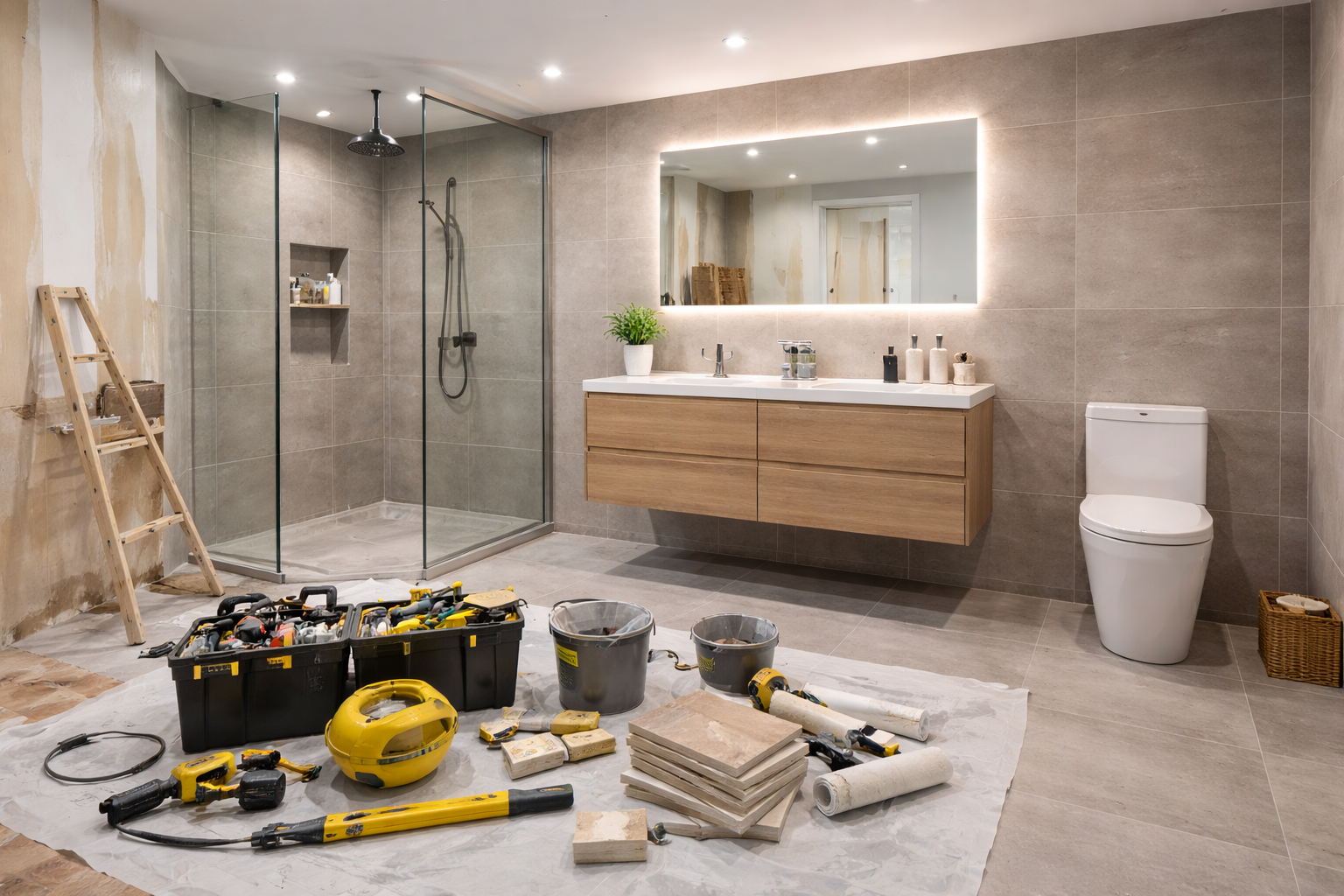 Qué hacemos: renovación completa de baños, modernizando instalaciones, revestimientos y equipamiento.